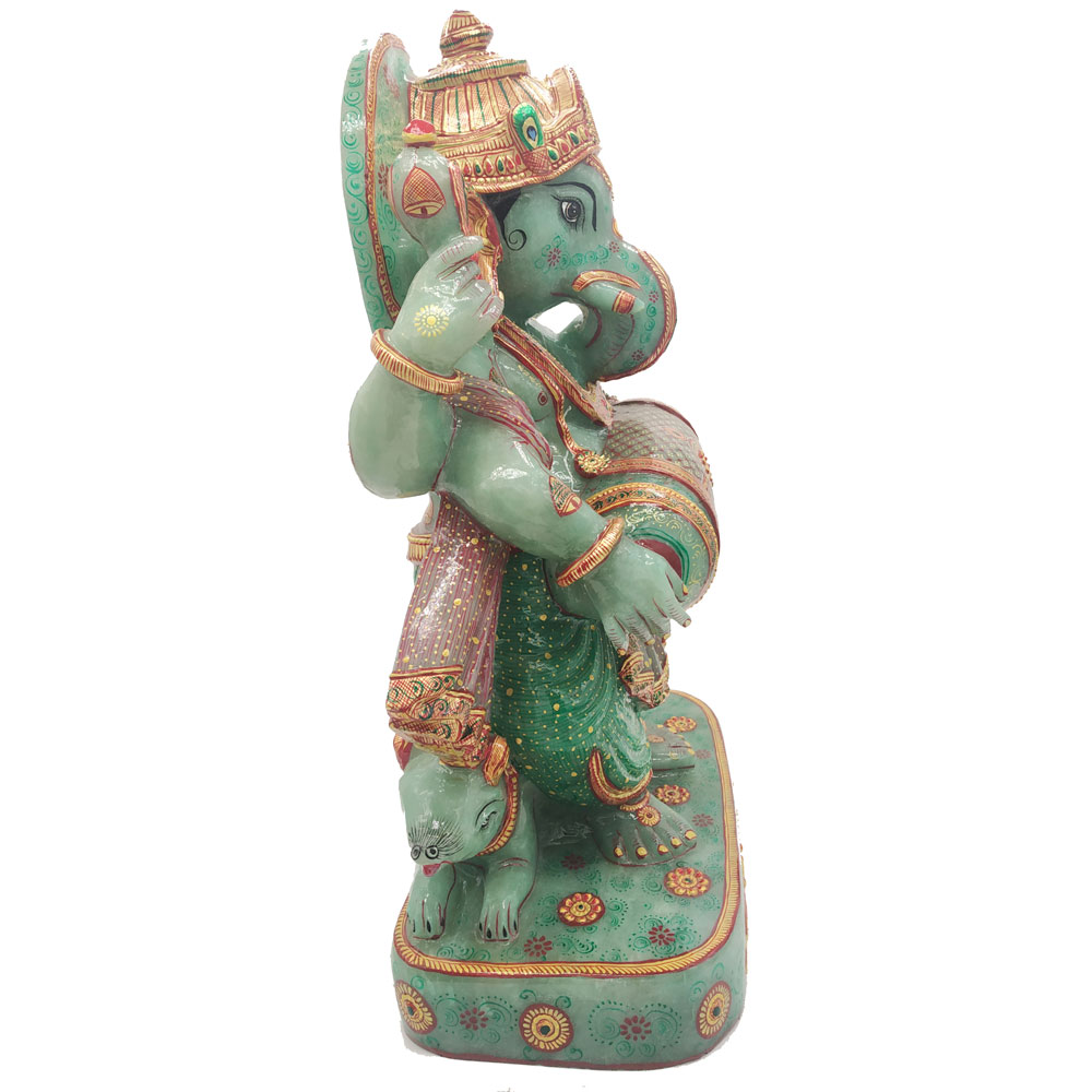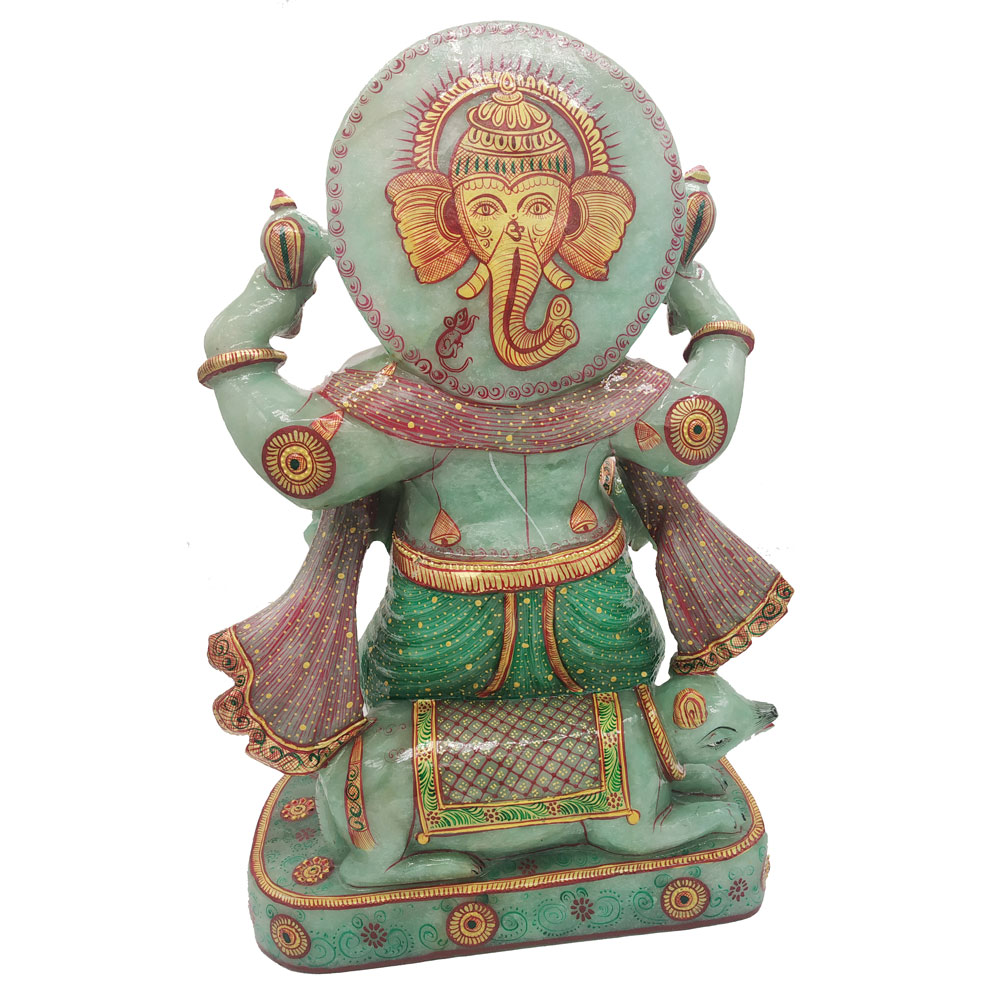 This is Lord Ganesha idol which is made from jade stone and gold Painting comes in attractive green color. This product is hand made and is ideal for home decor