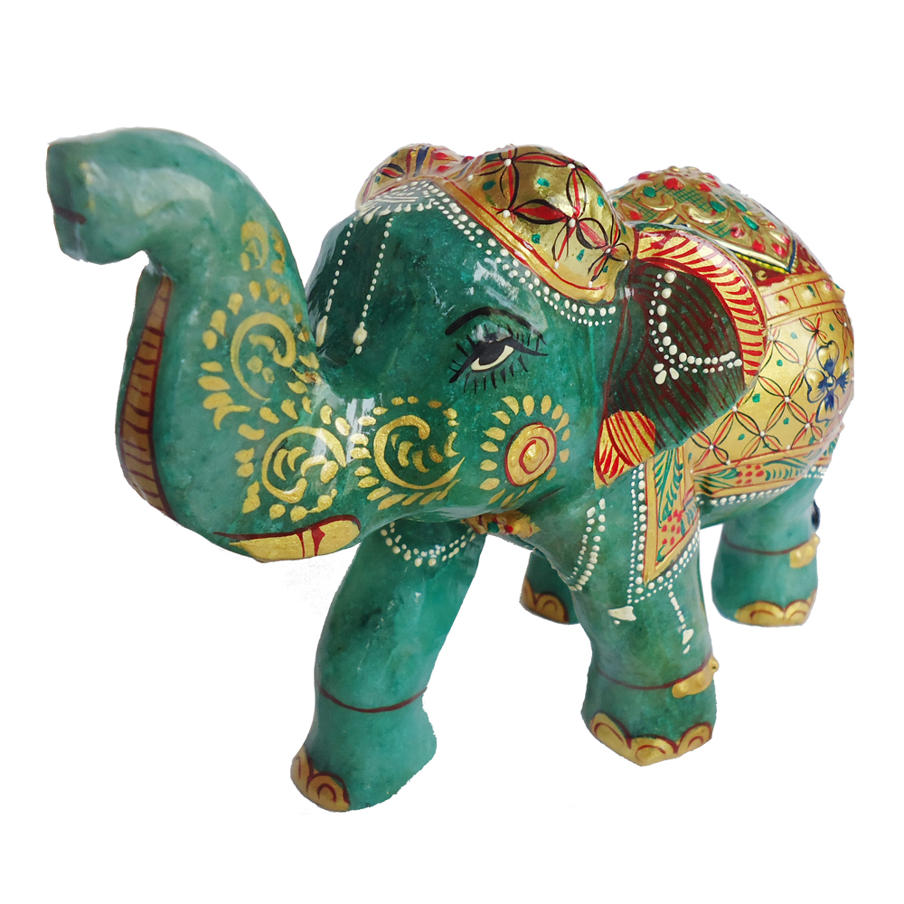 This is Elephant idol which is made from jade stone and gold Painting comes in attractive green color. This product is hand made and is ideal for home decor
