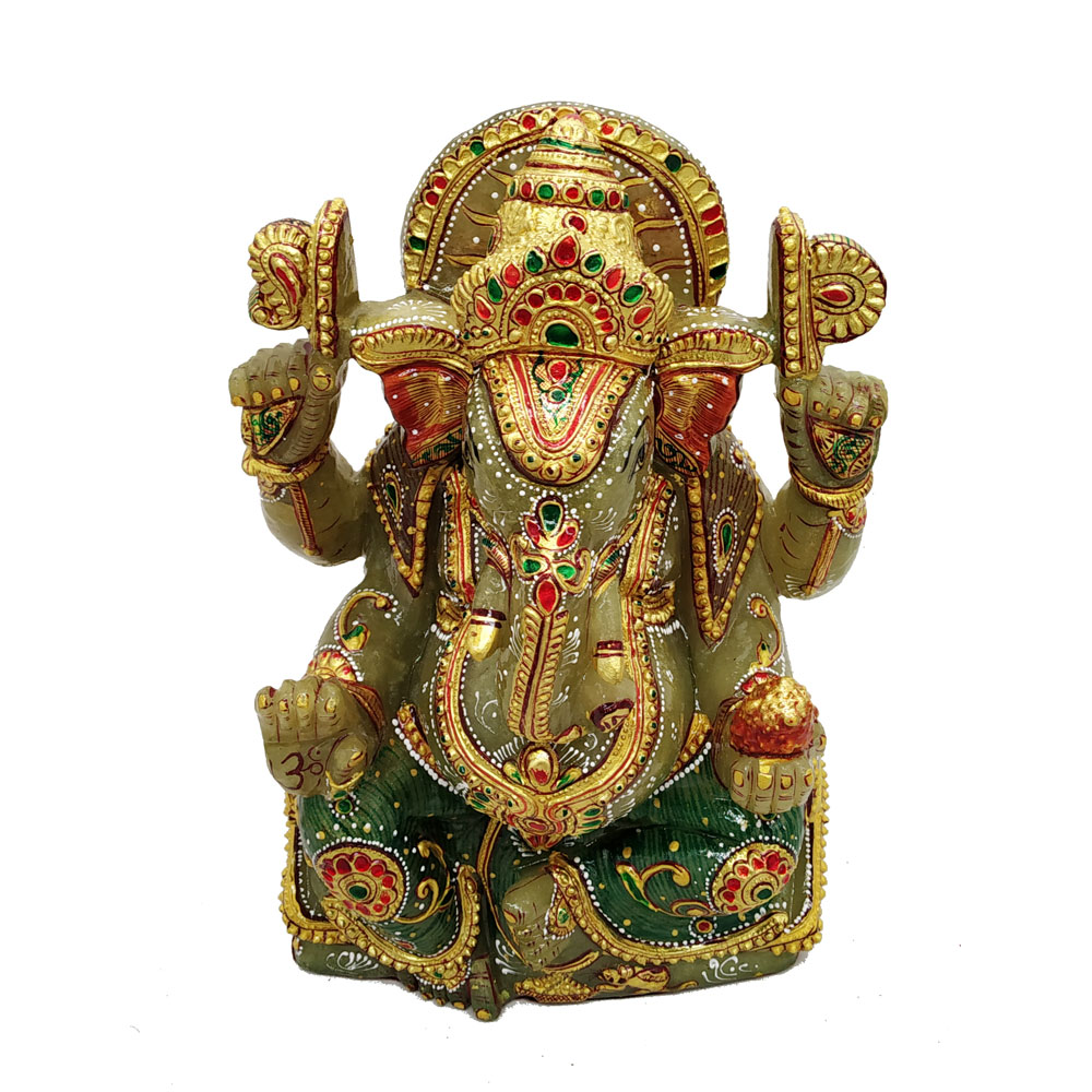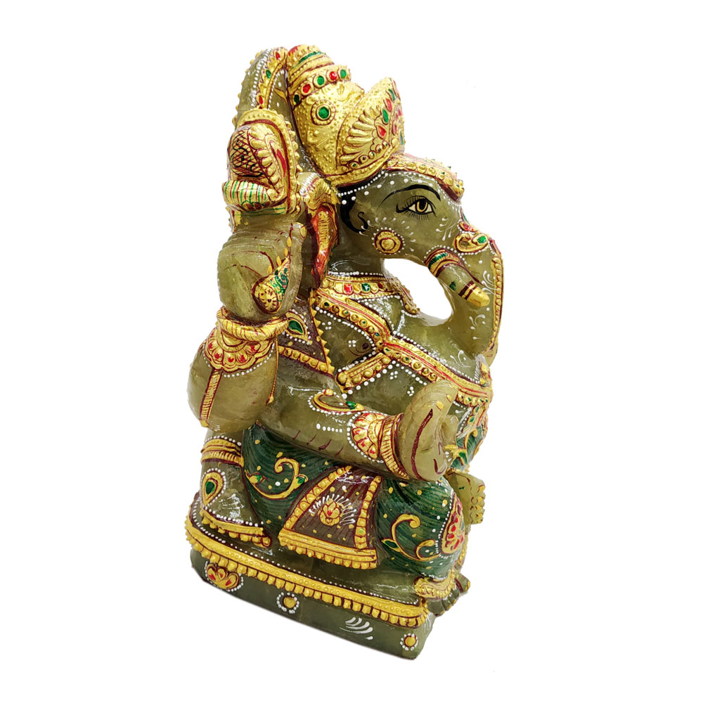Aventurine Jade Stone Ganesh Statue Gold Painted