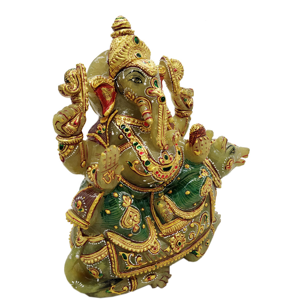 Aventurine Jade Stone Ganesh Sitting on Boat With Mouse Gold Painted Ganesha  Aventurine Jade Stone Ganesh Sitting on Boat With Mouse Gold Painted Ganesha Aventurine Jade Stone Ganesha Sitting on Throne  Statue Aventurine Jade Stone Ganesha Sitting on Throne Statue