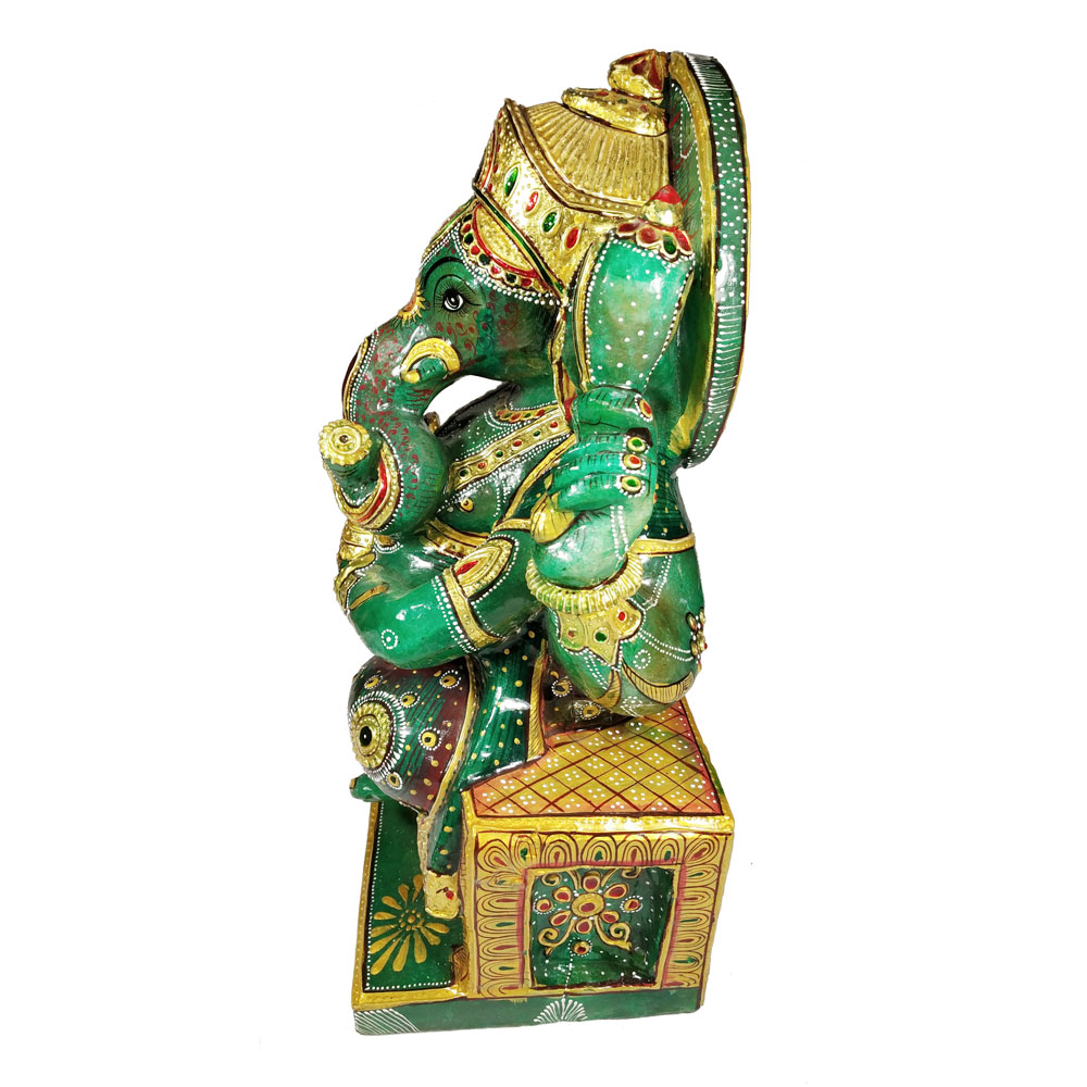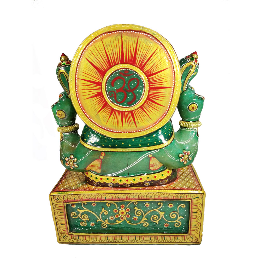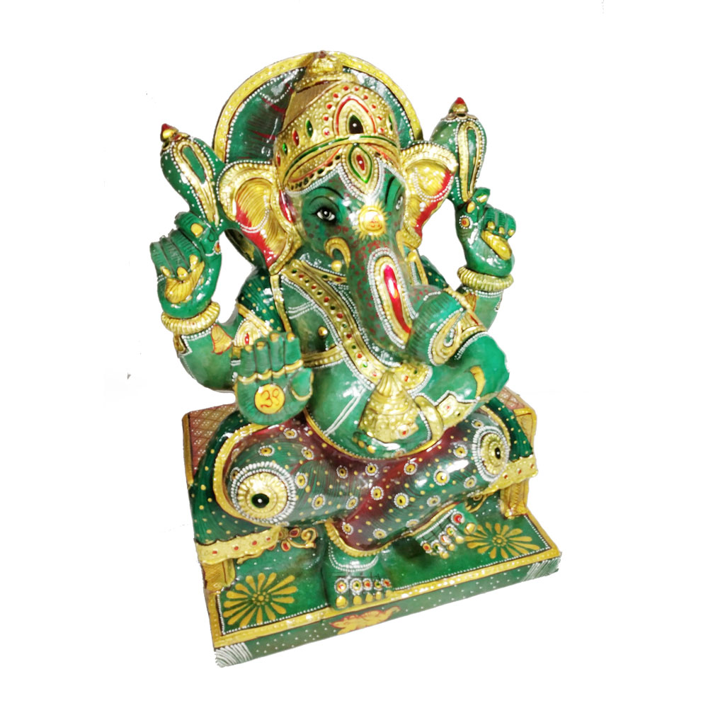 This is Lord Ganesha idol which is made from jade stone and gold Painting comes in attractive green color. This product is hand made and is ideal for home decor