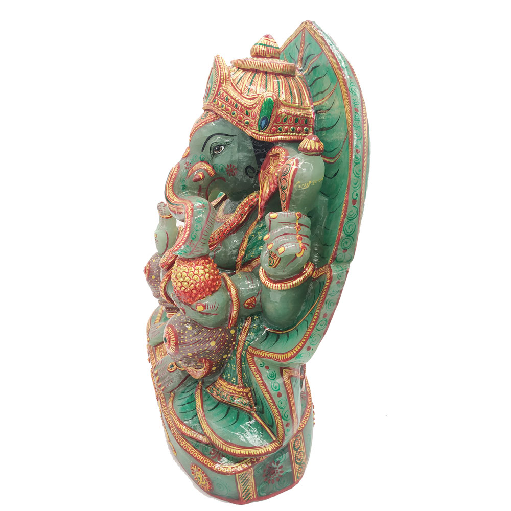 Aventurine Jade Stone Ganesha Statue Gold Painted Ganesha