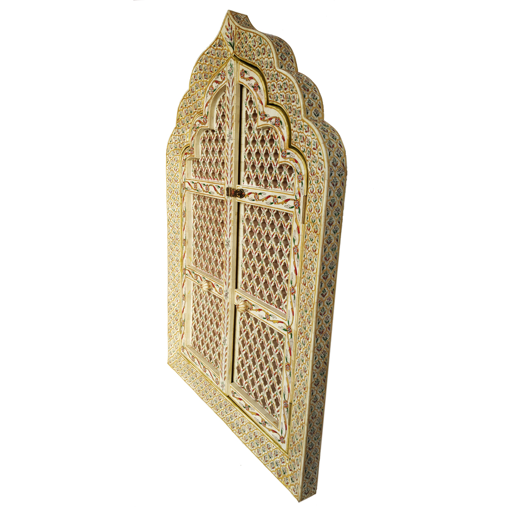 This Is a Beautiful Wooden Window With Covered By Camel Bone Piece Inlay Work and Emboss Painting you can use multi purpose for home decor