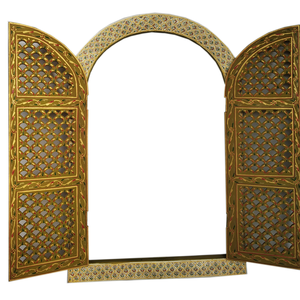 This Is a Beautiful Wooden Window With Covered By Camel Bone Piece Inlay Work and Emboss Painting you can use multi purpose for home decor