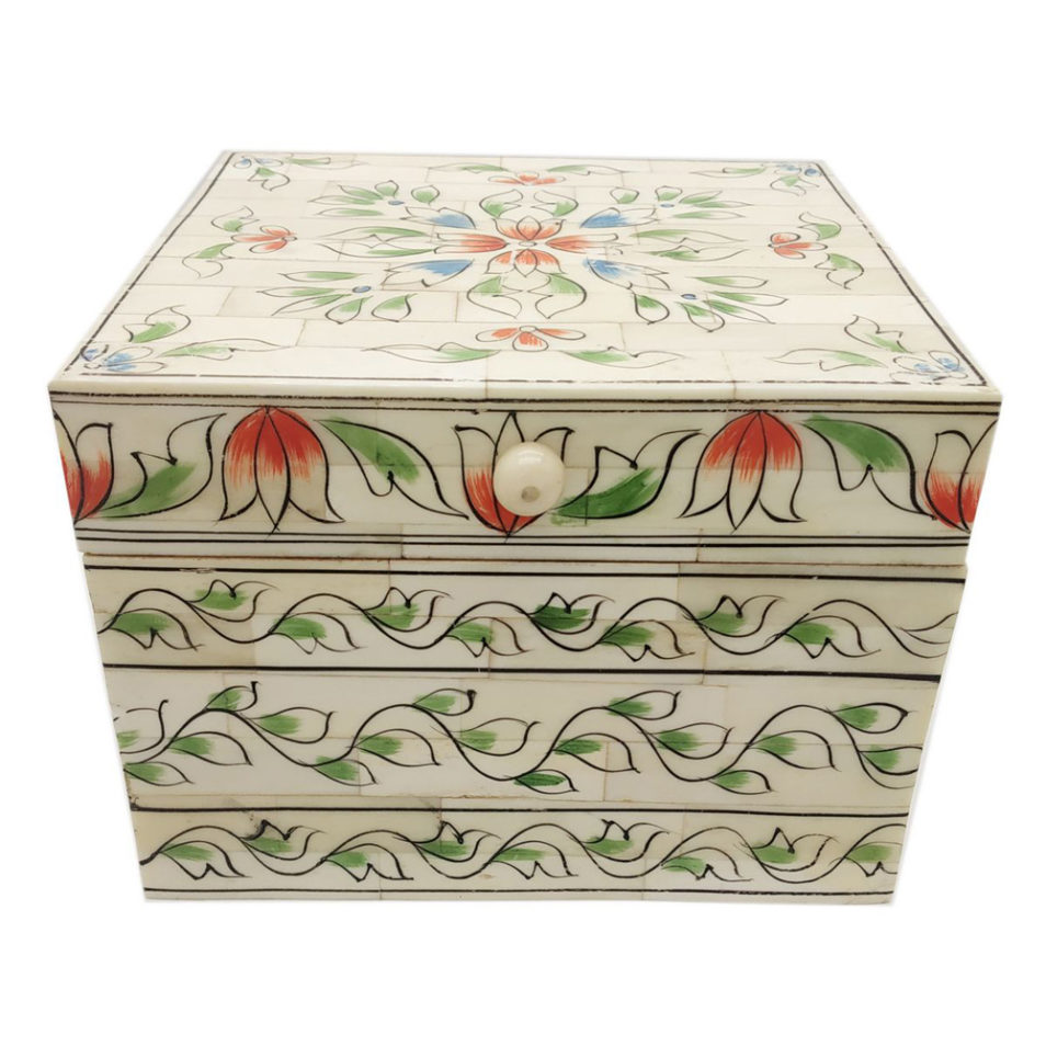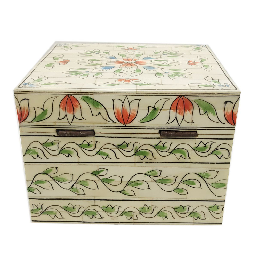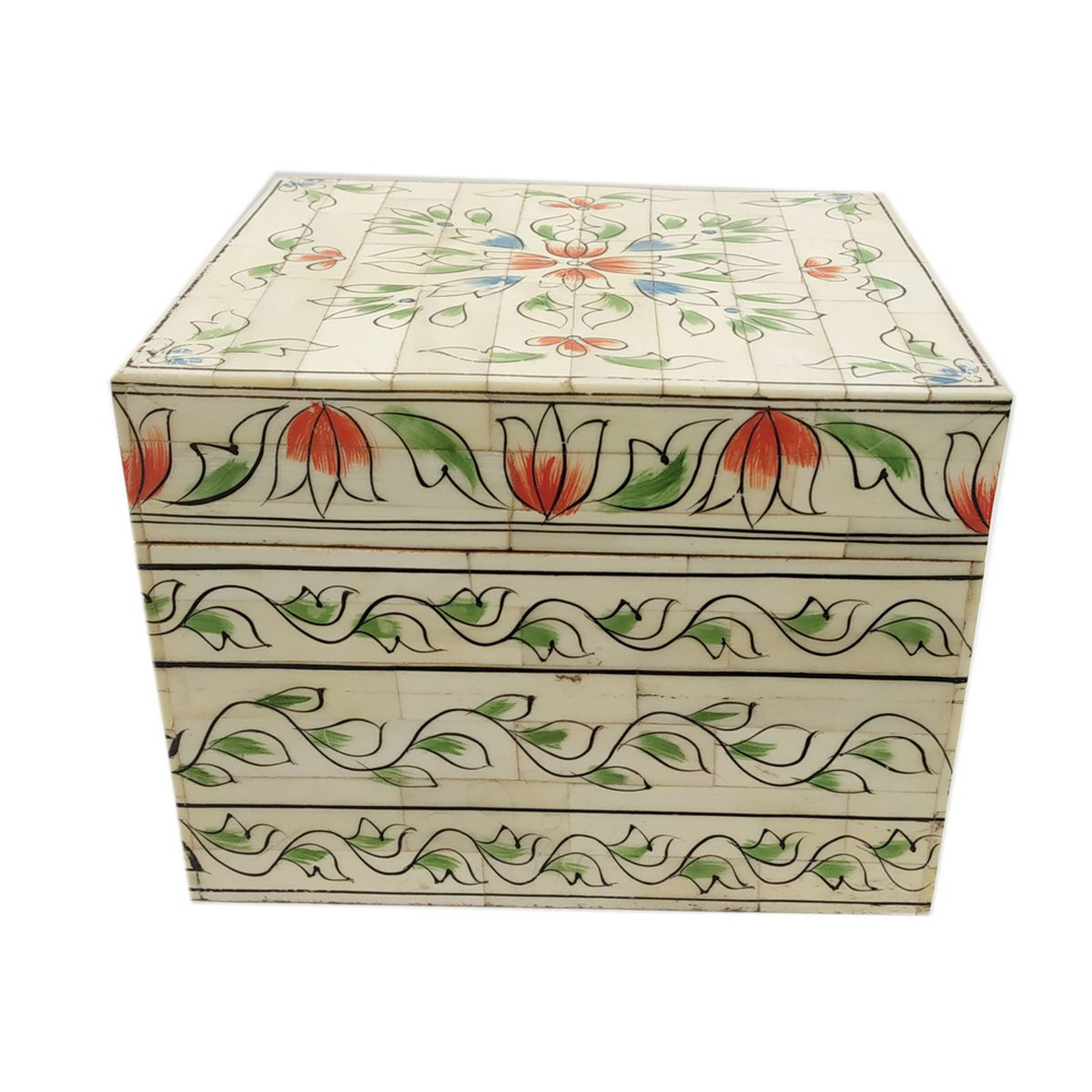Bone Jewelry Box Coverd by Floral Painting  Bone Jewelry Box Coverd by Floral Painting Bone Pancil  Box Mugal Figure Painting Bone Pancil Box Mugal Figure Painting