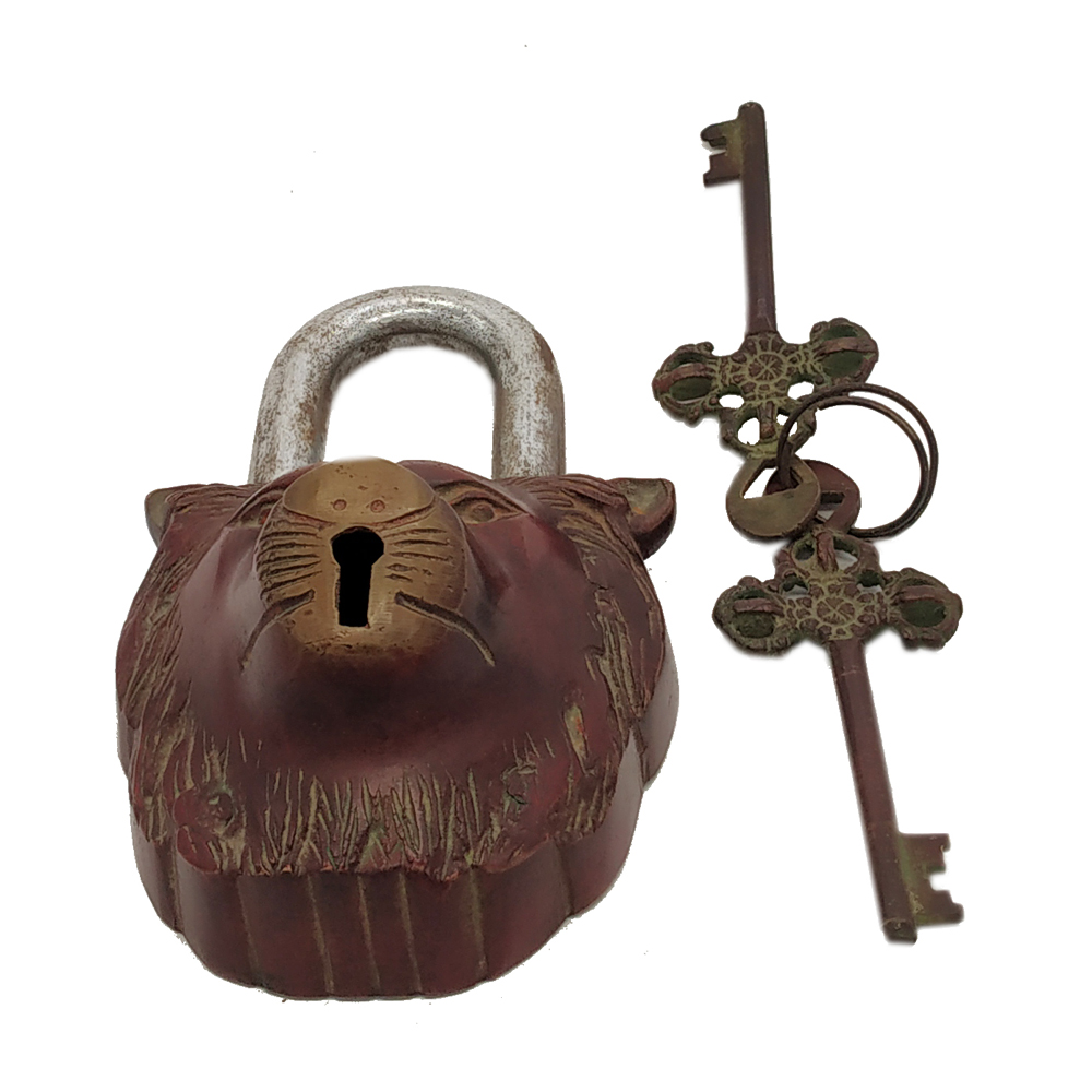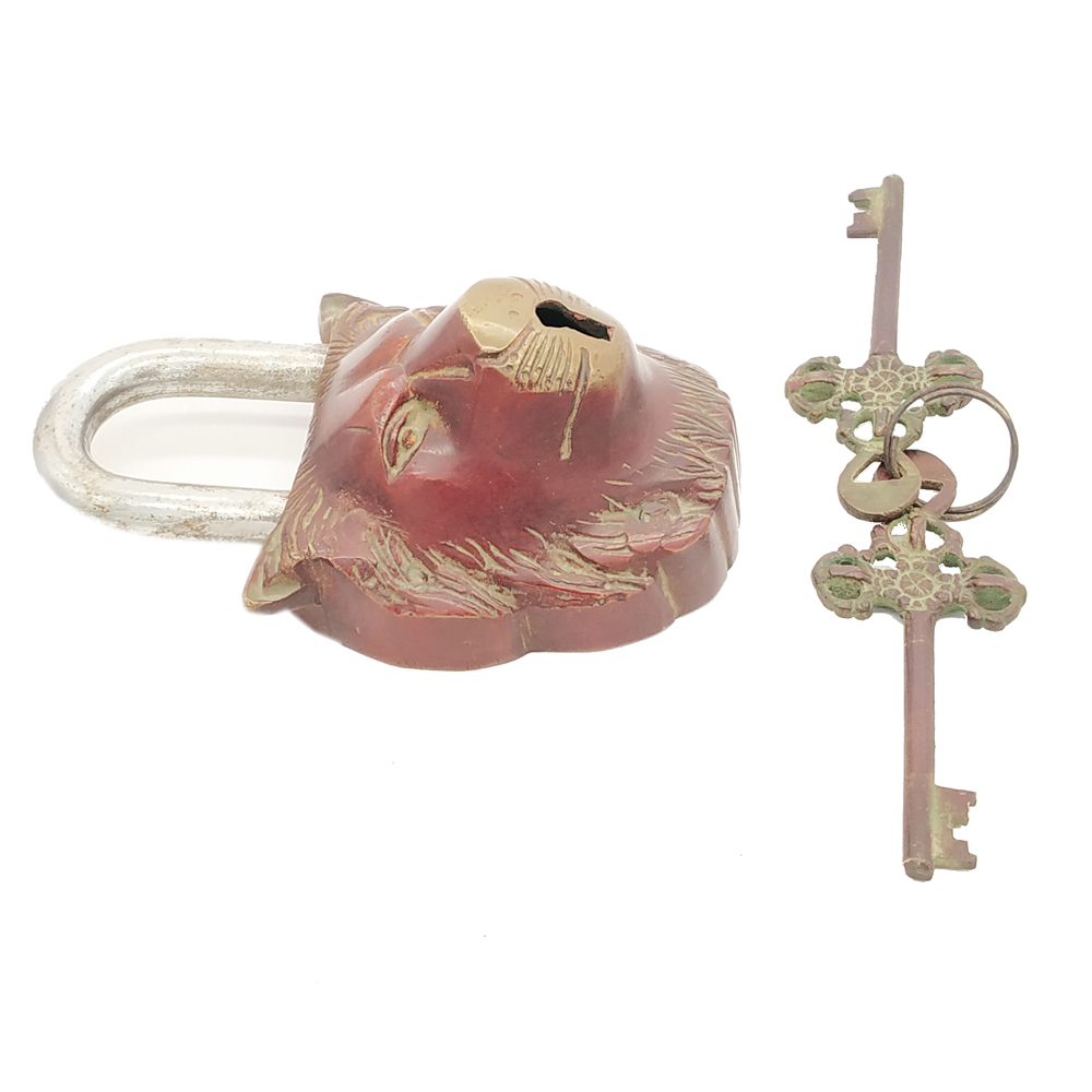 Brass Door Lock Antique Finish Lion