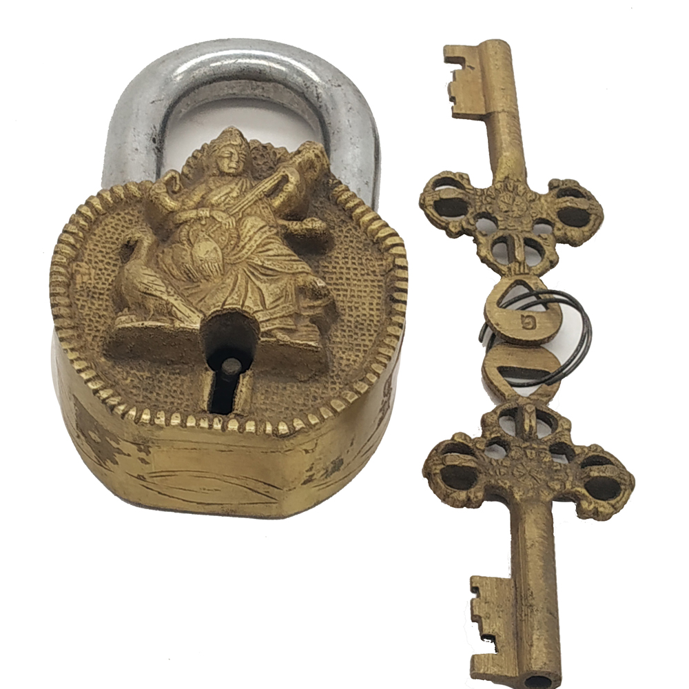 Brass Door Lock Antique Finish Saraswati