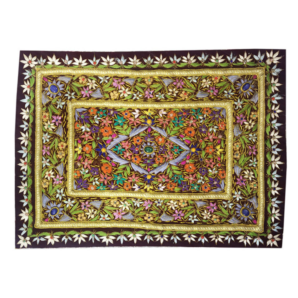 This is Beautiful spectacular is amazing collage of fine Zardozi embroidery accented with semi-precious stones.The sparkling Zardozi embellishments in gold & copper work will lend a spectacularly ethnic look and add style to your room & wall with the royal grandeur of Indian culture.This is a great gift for your Freinad and a genuine Collector.